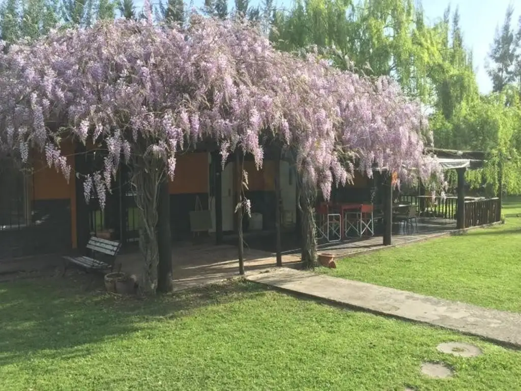 Gran quincho con parrilla, asador y horno de barro; freezer, heladera , cocina y baño extra en el quincho más una 5ta habitación con capacidad para 3 personas más ( 2 camas de 1 plaza y una cucheta doble de 1 plaza)