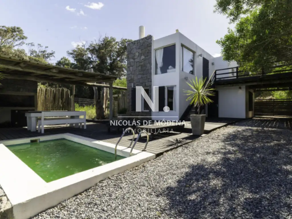 La casa cuenta con 3 dormitorios, incluyendo 2 suites, y 2 baños completos, proporcionando una capacidad de alojamiento para 6 personas, lo que garantiza amplitud y privacidad para todos los huéspedes. Independiente de la casa, se encuentra un dormitorio en suite para huéspedes yo dependencia de servicio, con cama matrimonial.