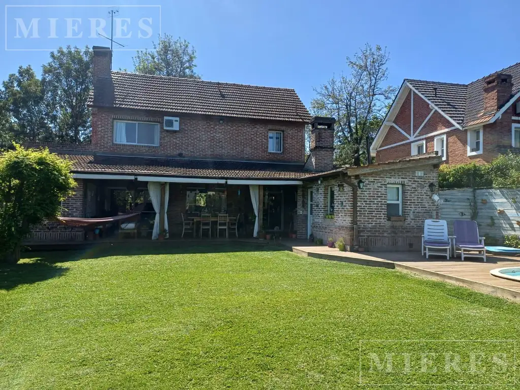 Exterior: galería amplia con parrilla. Dependencia de servicio con cama. Baño de pileta. Pileta. Jardín con riego manual.