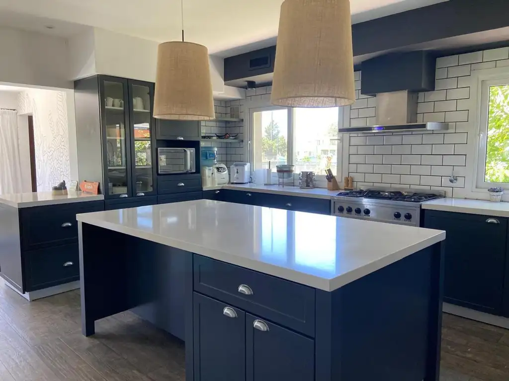 Casa distribuida en dos plantas con amplio living comedor con hogar a leña, cocina integrada super amplia y completa con gran isla con desayunador, comedor diario y family room integrados, Toilette de recepcion y Playroom.