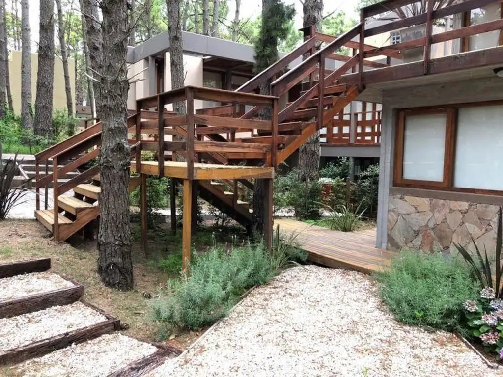 Características: Casa en 2 plantas. PB: 1 dormitorio principal con cama matrimonial con placard, 1 dormitorio secundario con 2 camas individuales con carrito con placard. Baño completo con bañera. PA: Living con diván cama, con salida al balcón terraza, cocina-comedor integrada. AA. Salamandra.