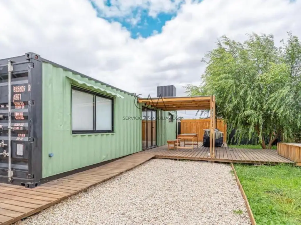 Casa container completamente equipada. Cuenta con galería semicubierta, jacuzzi y aire acondicionado.