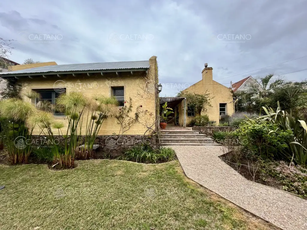 El área principal ofrece amplio living comedor con estufa a leña, dos dormitorios de buen tamaño y un baño. Cocina definida y dependencia de servicio con baño.