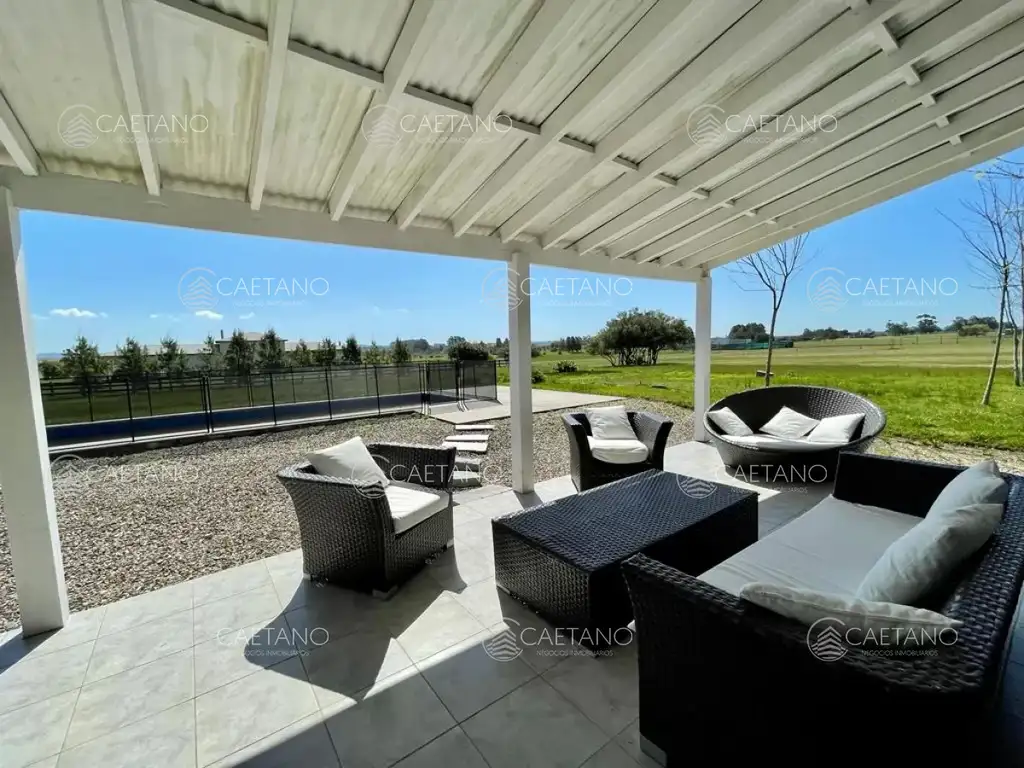 Piscina y parrillero techado.