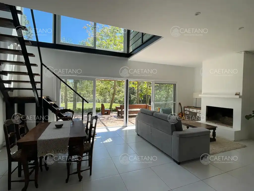 En planta baja, se encuentran 2 dormitorios más con cama doble (uno de ellos cuenta con baño en suite), 1 baño social con ducha y el espacio común que integra living, cocina y comedor. Este espacio se conecta con el deck trasero, el amplio jardín y la cancha de fútbol.
