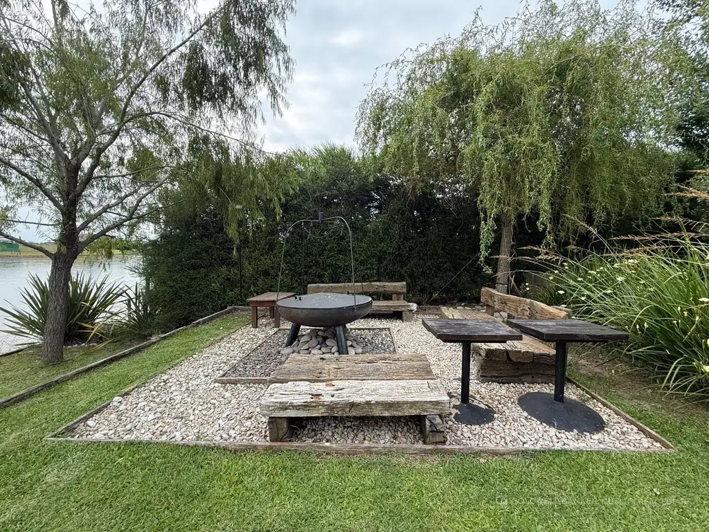 El exterior se destaca por su jardín parquizado con cerco vivo consolidado, árboles que aportan sombra y privacidad, y un fogonero frente al agua, ideal para disfrutar reuniones y atardeceres.
