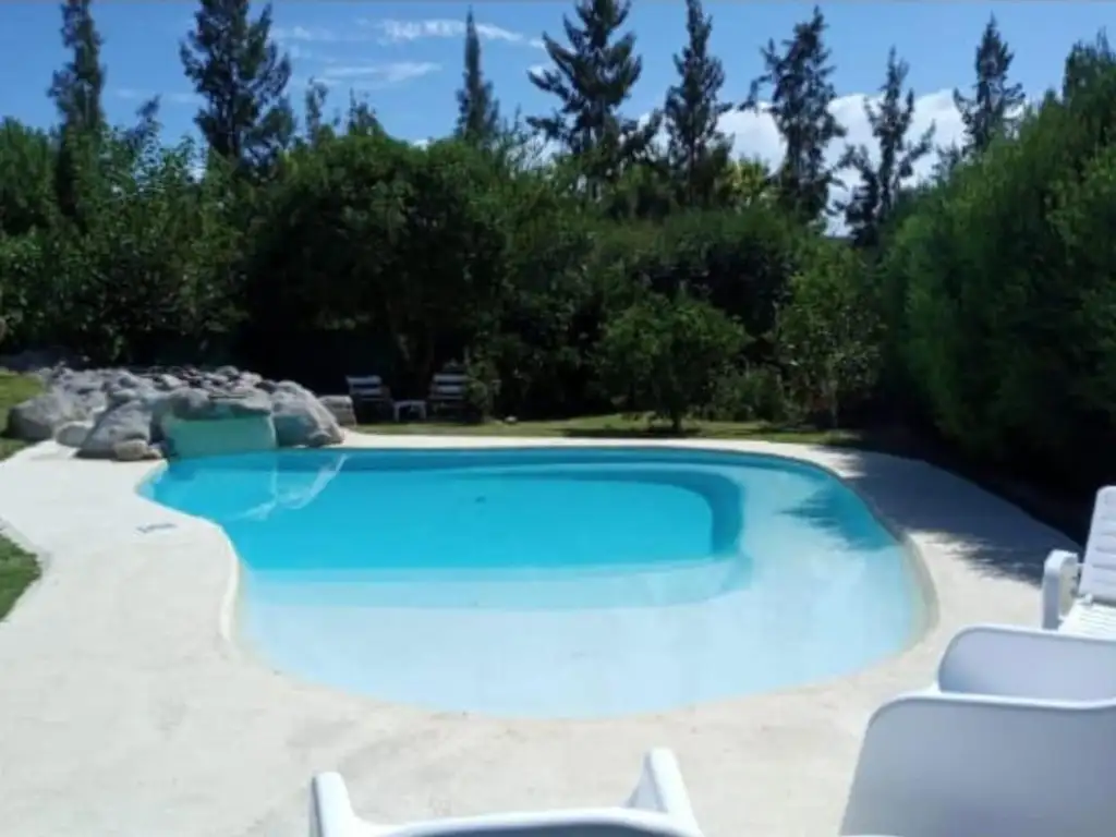 Gran jardín parquizado, con pileta con cascada, árboles frutales, huerta y sector de hamacas.