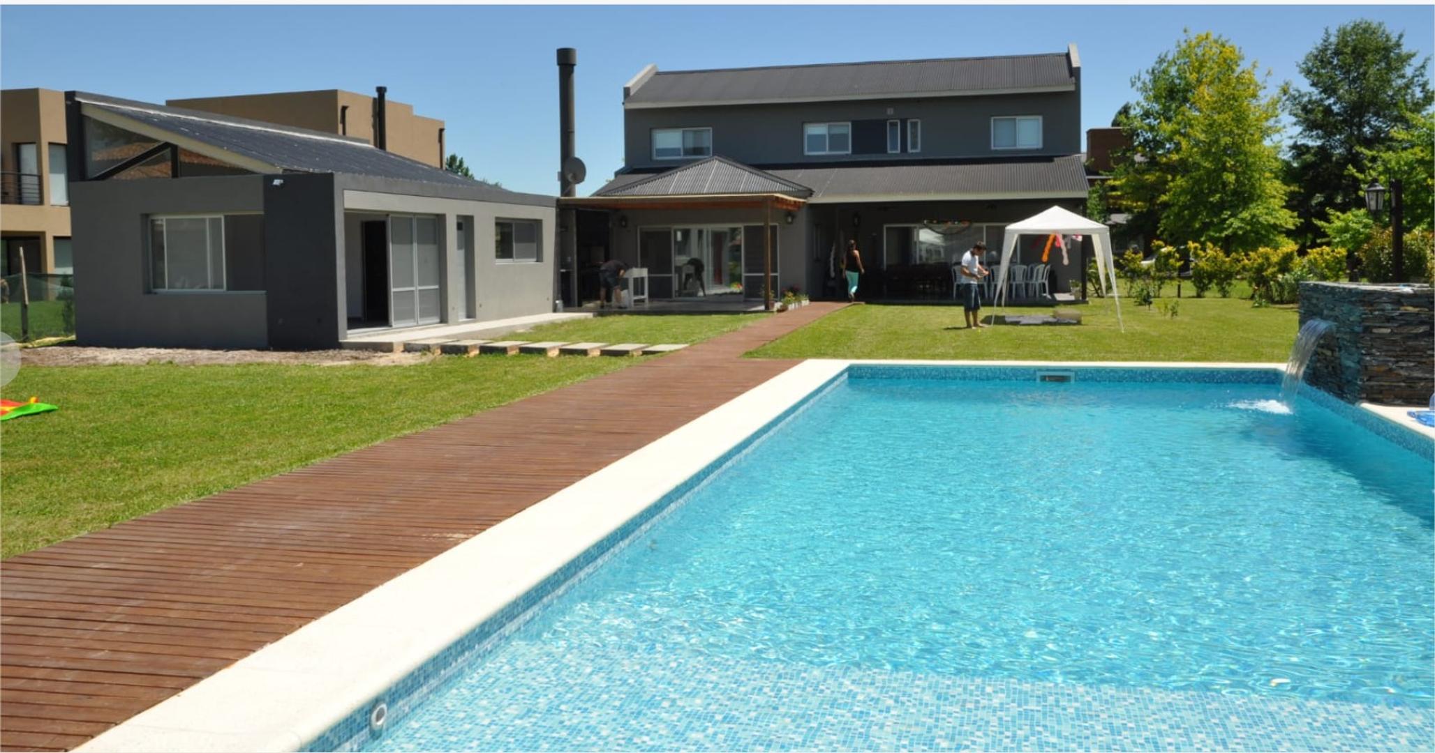 Casa 6 ambientes moderna y luminosa de 300m2 cubiertos y 60m2 semicubiertos. Se encuentra sobre un lote central de 1500m2, a sólo 100m del ingreso principal y piletas de natación, SUM y plazas. La casa cuenta con todos los servicios, está amueblada al detalle con primeras marcas de electrodomésticos y el barrio posee muchos amenities ideales para familias.