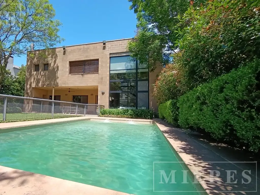 Exterior: Galeria con parrilla, ventilador de techo, hermoso jardín parquizado, Piscina de 8 x 4 cercada, Cochera descubierta para 2 autos