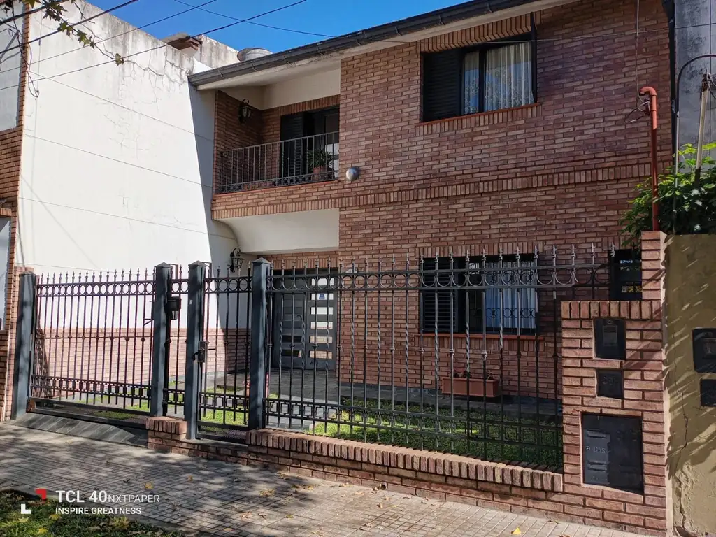 En planta baja jardín al frente, cochera para dos automóviles, sala de recepción, baño de cortesía, cocina comedor amplia totalmente equipada con mobiliario de altísima calidad, lavadero independiente, escalera revestida en madera a planta alta e importante abertura que comunica con el patio semicubierto, sector césped y quincho con parrillero.