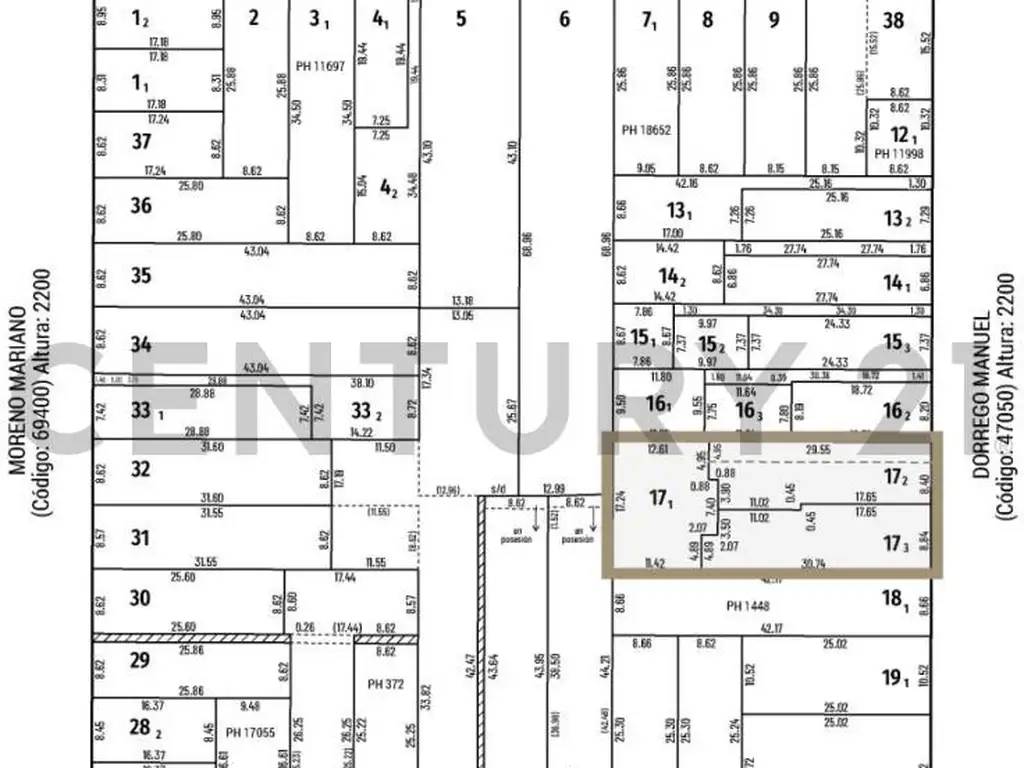 Medidas: Frente 17,24 mts Fondo 42,16 mts. Supercicie total: 726m2