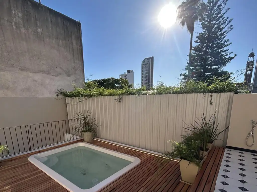 "Casa Piano" cuenta con patio con espacios verdes y parrillero, terraza con pileta y solarium y un enorme living comedor muy luminoso.