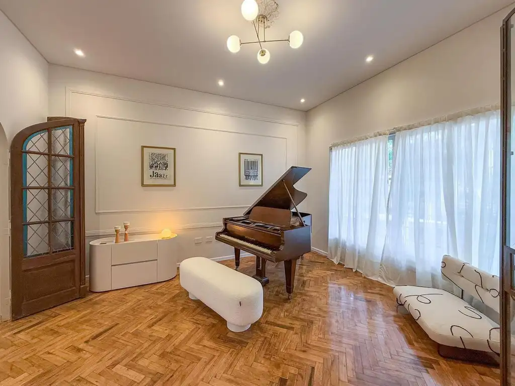 Casa de revista al frente con 4 dormitorios, cochera cubierta, patio y terraza con pileta más solárium. Pensada en casa detalle con ambientes funcionales e ideada para una gran familia. Ingreso a hall de recepción compartimentado, de un lado se encuentra la cochera, del otro lado una sala tipo comodín que puede ser utilizada como oficina independiente o ampliación de estar diario y si seguimos derecho accedemos al gran ambiente social con un living, comedor y cocina anexa, baño toilette y salida al patio con galería, césped natural y parrillero. En la planta baja también contamos con el dormitorio principal, baño en suite y vestidor propio. Escalera a planta alta con 3 dormitorios más, lavadero independiente y salida directa a la terraza con solárium más pileta. El patio exterior se conecta a la terraza mediante una escalera caracol, logrando que las visitas no pasen por el sector íntimos de los dormitorios. Calidad 100% restaurada con pisos varios, algunos de parque de madera, pinotea, granito y baldosas de cemento pintadas, aberturas de hierro, otras de aluminio con DVH y algunas en madera con persianas en el mismo material, correcto enrejamiento al frente, placares completos con interiores, luminaria exterior, caldera para agua caliente, preinstalación de A/A y radiadores (no incluye artefactos). Techos altos planos y tanque de agua a altura. Cocina con mobiliario completo de bajo mesada, alacena, bacha de acero inoxidable amplia, mesada en silestone blanco, anafe y horno diferenciados, campana purificadora y espacio oculto para heladera doble. Baños con loza sanitaria y griferías de primeras marcas, duchador con mamparas de vidrios, espejos y accesorios colocados, extractor o ventilación natural. Cochera con portón manual.