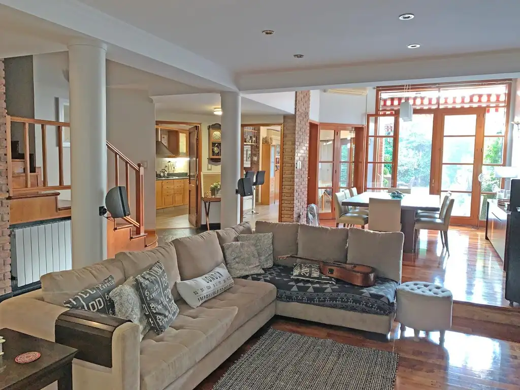 En planta baja, se destaca un amplio livingcomedor de forma rectangular, con gran ventanal en doble altura orientado al jardín y ventana al frente en el área de estar, lo que garantiza excelente iluminación natural y ventilación cruzada.