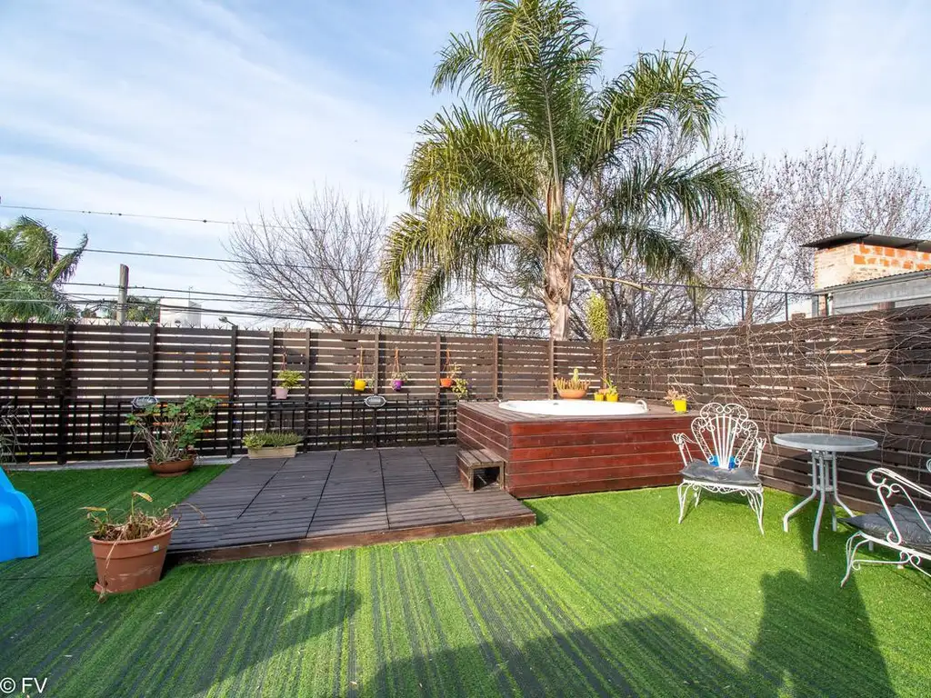 Por el living, a través de una gran puerta balcón, accedemos al patio verde que cuenta con una escalera que nos da paso a la terraza, esta misma cuenta con un quincho semicubierto totalmente equipado, una habitación de servicio con baño completo y un excelente espacio diseñado con césped sintético y jacuzzi para 4 personas con solárium.