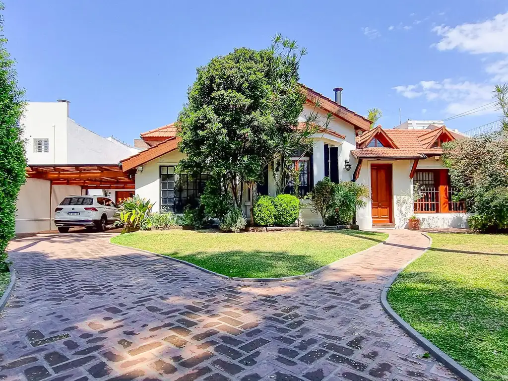 Casa en excelente estado de conservación. Al ingreso se ubica un amplio jardín de frente y 2 cocheras con capacidad para vehículos grandes. La vivienda consta de cocina equipada con todos sus electrodomésticos -renovada hace 2 años-, ofrece además una barra desayunadora y área de comedor. A la izquierda de este sector está el living con una escalera que conecta a un amplio altillo que podría convertirse en un cuarto dormitorio.