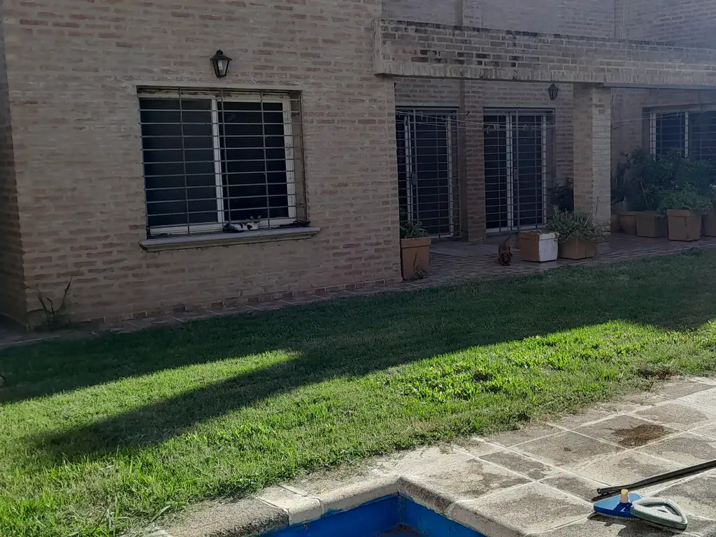Cuenta con 4 o 5 dormitorios (uno en suite), amplios espacios sociales, cocina-comedor, estudio, cochera para tres vehículos, quincho independiente y pileta.