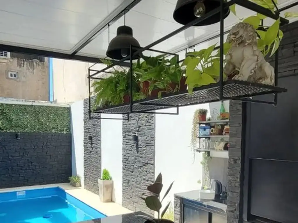 Área Exterior: Galería/quincho abierto de 19.5 m² equipado con parrilla e isla con anafe. El sector se complementa con una piscina y un segundo toilette con acceso desde el exterior.