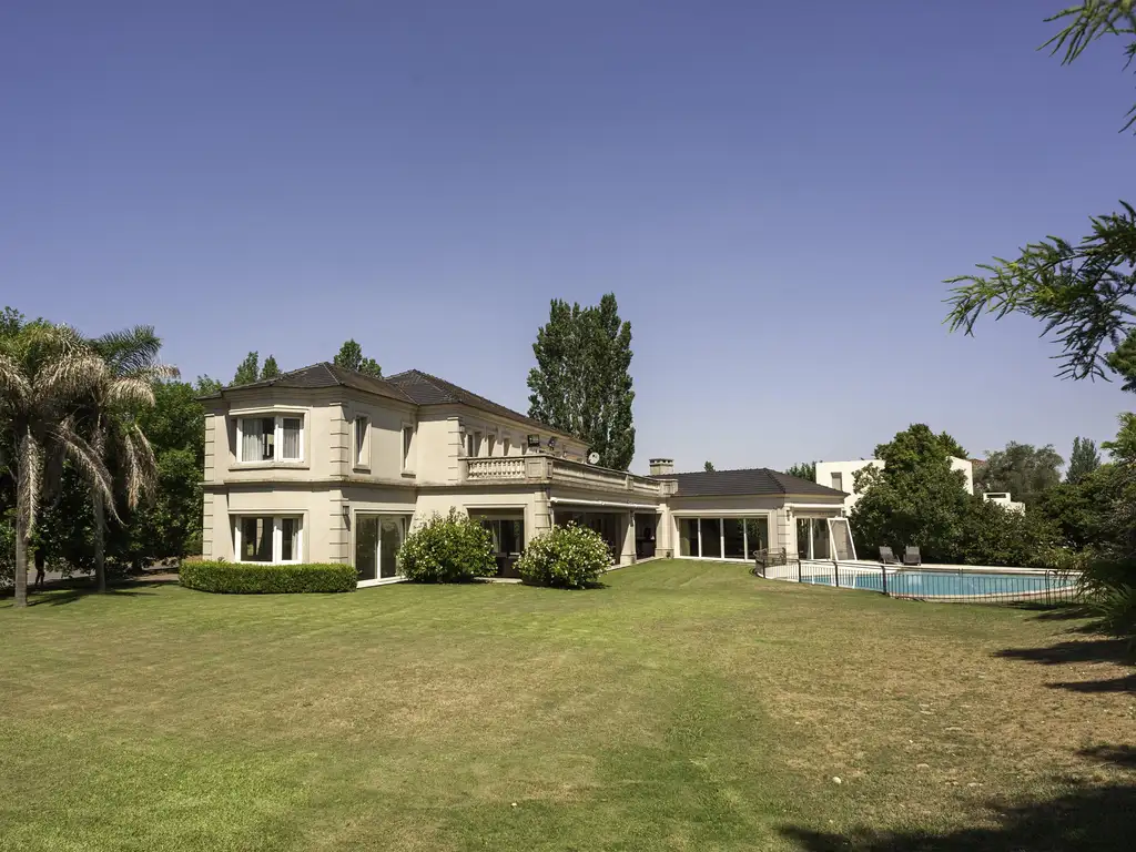 Muy buen quincho cerrado con barra y mobiliario en madera, heladeras industriales, sistema de audio y puertas ventana con salida a piscina y jardín.Piscina climatizada con playa húmeda y protección para niños.Baño exterior con ducha.Cochera cubierta para 2 vehículos y estacionamiento en pórfido para 10 vehículos