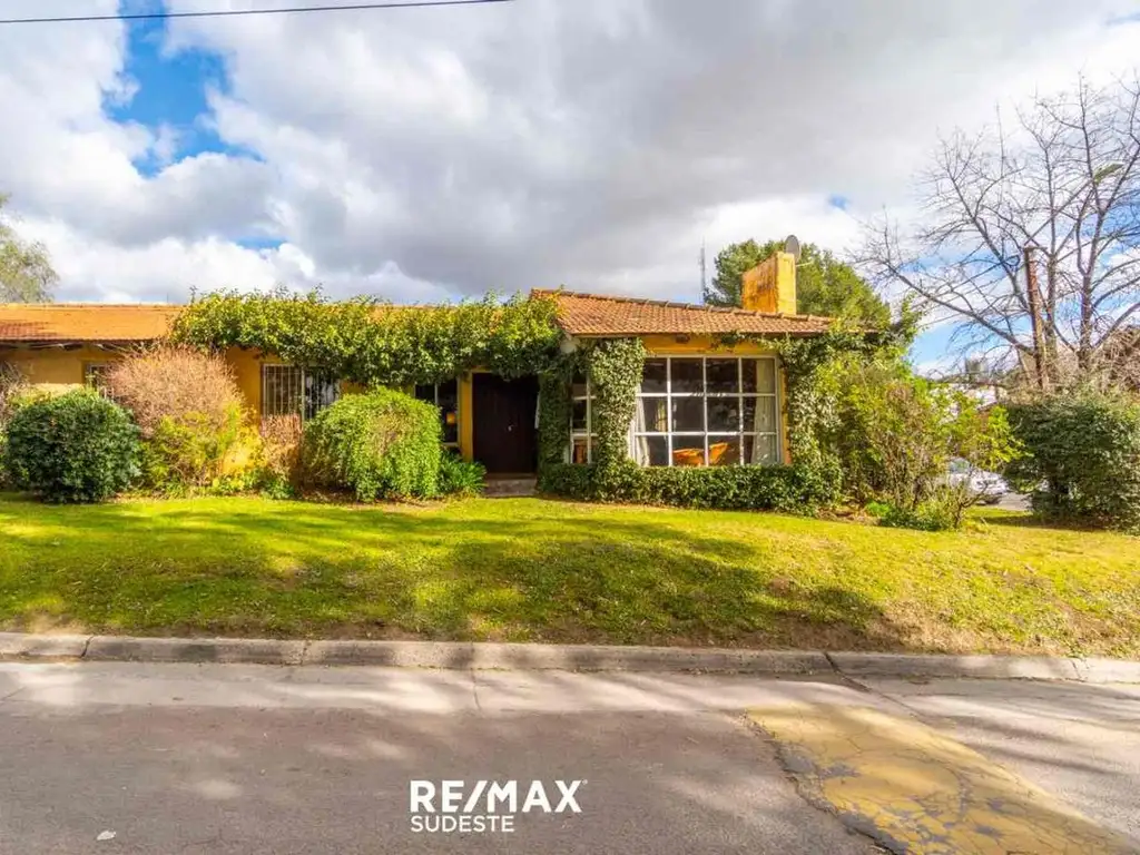 Dicha propiedad tiene un Estilo Rústico Campestre, cuenta con todos los servicio, está compuesta por los siguientes ambientes: recepción, living-comedor amplio, con un hogar que aporta calidez y confort, super luminoso, con un Bow Window, que deja entrar el sol hasta el atardecer.