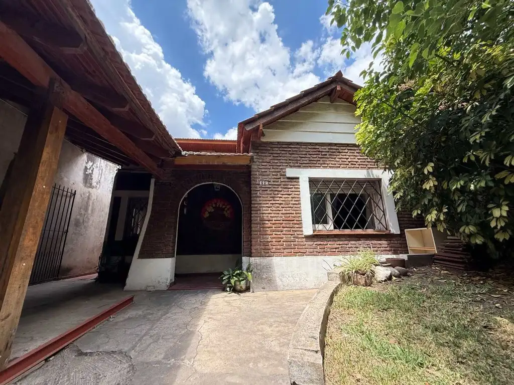 Nos recibe un patio delantero, con cochera techada para un vehículo grande o dos pequeños . Un jardín verde y la fachada del domicilio, en el que se destaca un techo de tejas recientemente renovado. Prestale atención al pasillo lateral, que esconde un detalle que suma MUCHO.