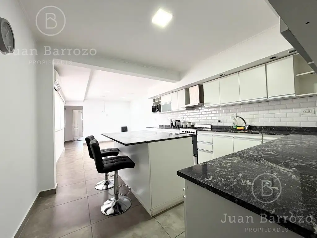 Portón de rejas automatizado, ingreso a gran living al frente, cocina con muebles sobre y bajo mesada completo, isla con mesada tipo desayunador, lavadero cubierto y toilette, escritorio o dormitorio de servicio al contrafrente.