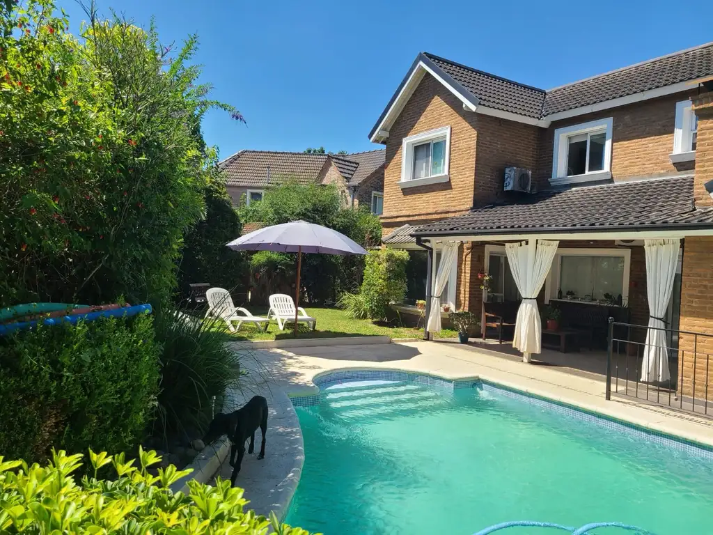 - Jardín parquizado con pileta recubierta de venecitas y galería con parrilla.
