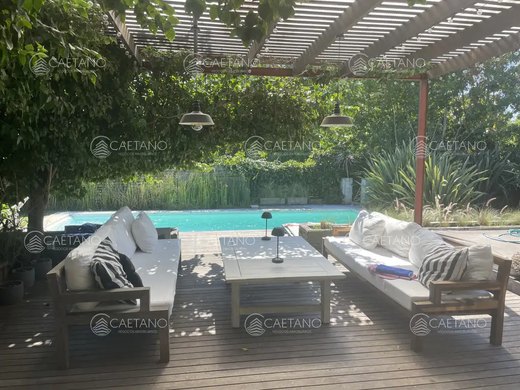 Gran barbacoa con ventanales plegables dentro de las paredes revestidas con lapacho patinado, con parrillero - chivitero, horno de leña, 2 hornallas a gas con gratinador eléctrico y freidora eléctrica con campana de extracción, cava toda en piedra con piso de madera antigua, toilette completo, living con hogar a leña, gran barra y comedor para 14 personas, galería con 35 metros cuadrados, Jacuzzi exterior para 6 personas, piscina de 5 x 10 con cascada y una cancha de fútbol con iluminación y drenajes, de 15mts. x 25 mts. aprox.al fondo del jardín. Surround en la barbacoa. Riego automático en todo el jardín.