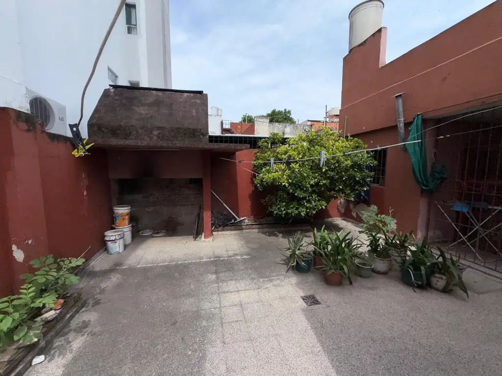 Galeria semicubierta y amplio patio con parrillero.