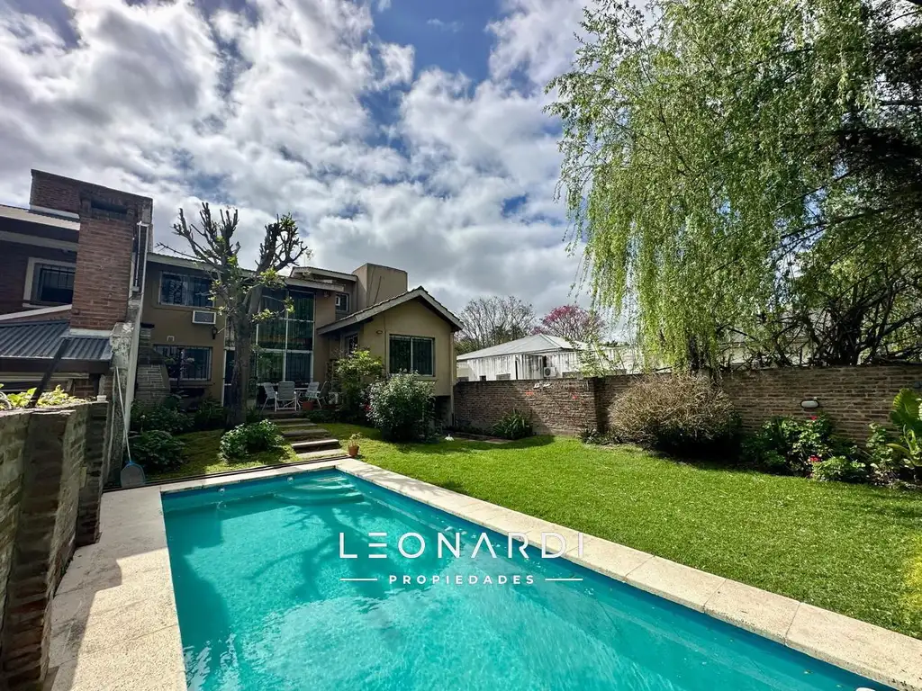 Exterior: Parque arbolado con piscina. Galería con parrilla. Quincho.