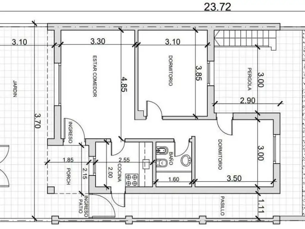 Porch de ingreso con acceso al estar comedor, cocina separada, pasillo distribuidor que conecta con el primer dormitorio, principal, con ventana con vista a la pérgola de la casa.