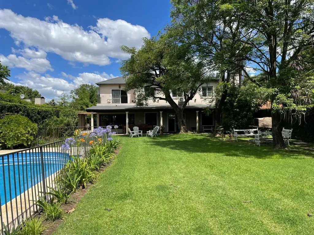 Galería con parilla, jardín delante y atras de la casa , pileta grande 6x4, fogonero, quincho y cochera para 1 o 2 autos.