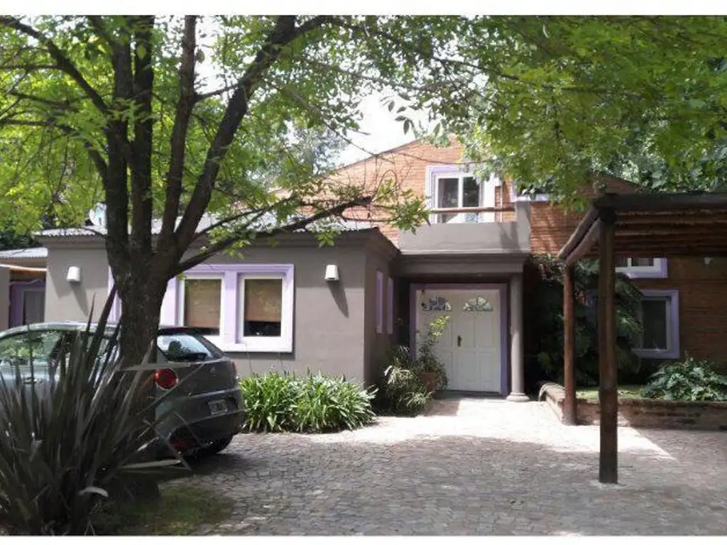 Gran living-comedor en doble altura con hogar a leña. Playroom/tv. Toilette. Entrepiso con Escritorio o dormitorio para huésped con baño. Cocina en L con comedor diario y entrada de servicio. Lavadero. Dependencia de servicio con baño. Hacia el sector privado se encuentra el Dormitorio principal con hidromasaje en suite y baño completo + vestidor y escritorio. 2 Dormitorios con placar que comparten otro baño completo. Todos con vistas al jardín, super luminosos.