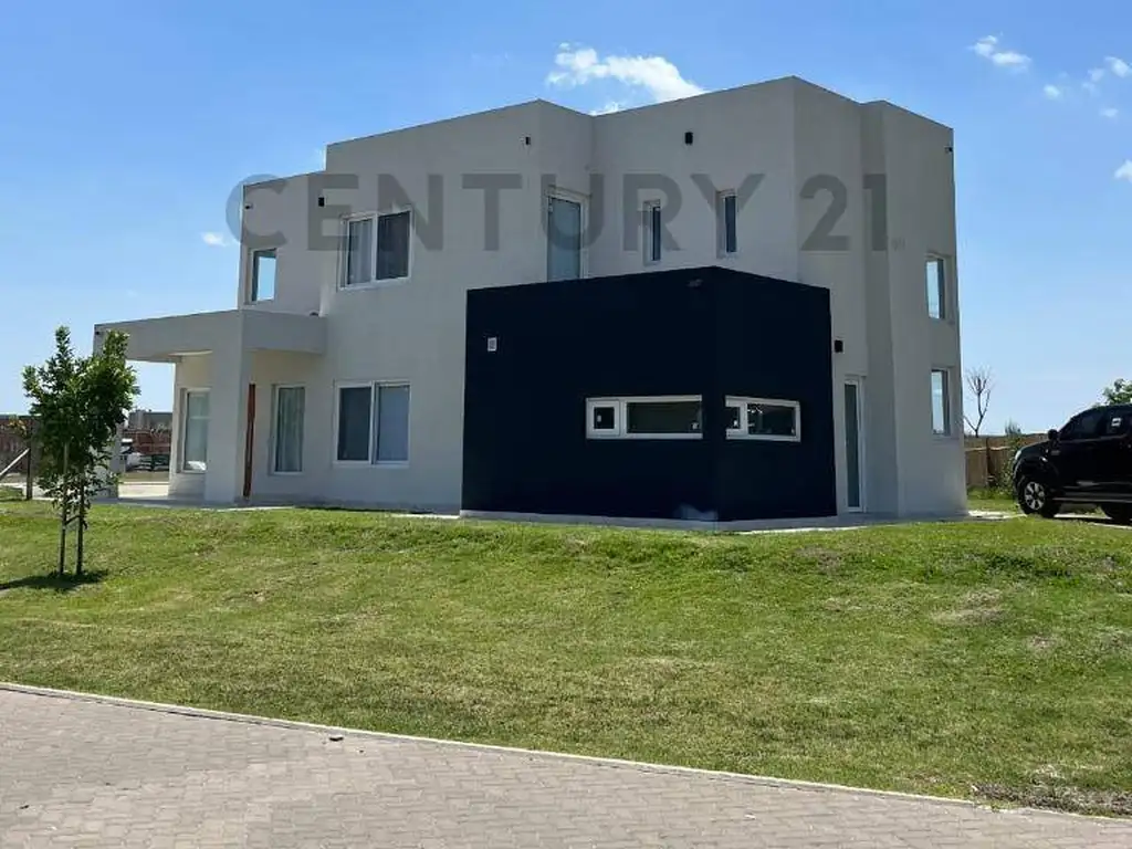 La casa tiene 1 año de antigüedad, la superficie es de 226 m2 cubiertos. En planta baja se ubican el living, el comedor, la cocina-comedor separada, un toilette y el lavadero. En planta alta hay 3 dormitorios, un baño compleo, una terraza con vistas a la laguna, y el dormitorio principal es en suite con vestidor. Posibilidad de ampliar a dos dormitorios más.Los pisos son de porcelanato, las aberturas son de PVC con DVH.Tiene cochera para dos autos, una galería semicubierta y también cuenta con parque y piscina.