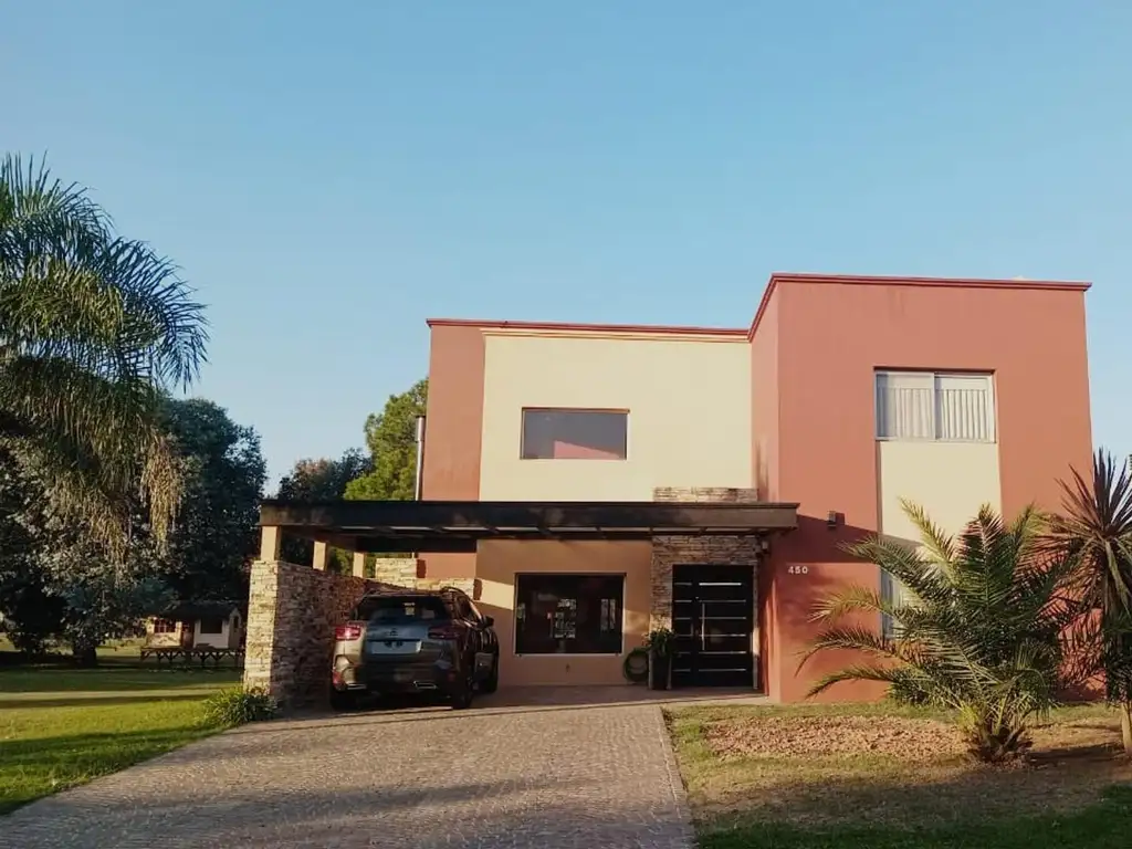 En planta baja cuenta con una habitación, baño social, cocina amplia y un espacioso living-comedor con hogar. También posee un quincho techado ideal para reuniones y un gran patio con piscina, todo con vista al golf.