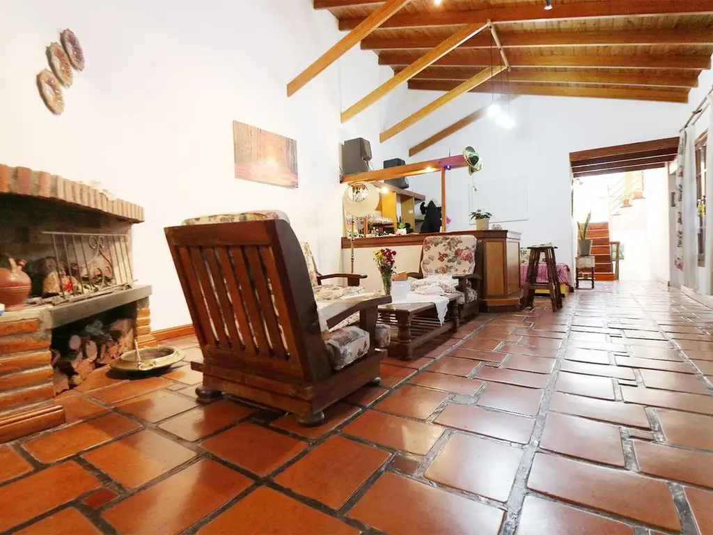 • Living y comedor amplios con hogar a leños natural