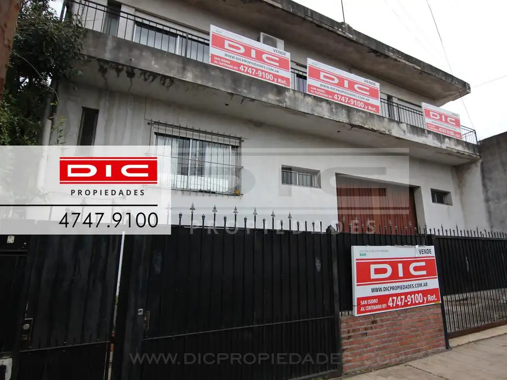 Planta Baja: al fondo 2 dptos de 3 ambientes, cochera cubierta para varios autos más patio y quincho. La casa principal en 1er piso con 4 dormitorios, 1 en suite. Amplio living con salida al balcón. Cocina en comedor diario y terraza. Cochera para varios autos más un depto en el primer descanso que sirve de escritorio.