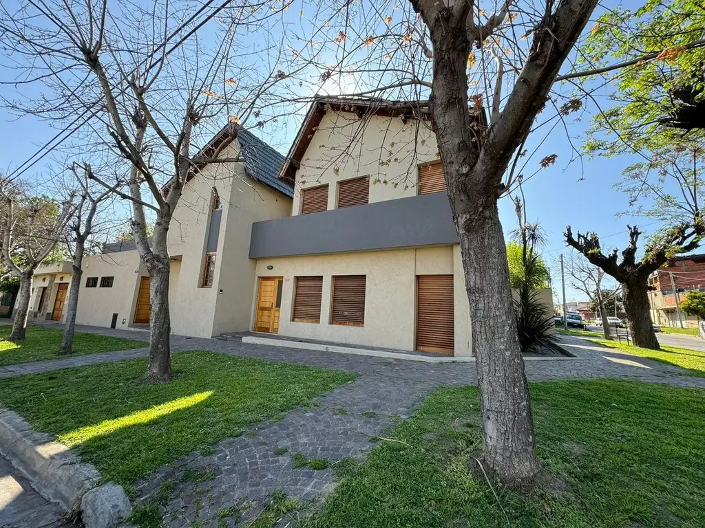 Planta baja: living comedor con cocina semi integrada separada por una barra, quincho muy amplio con cocina equipada, parrilla y horno a leña con salida al jardín, baño; tres dormitorios con placard que comparten un baño. El jardin tiene espacio para poder hacer una pileta, cuenta con un amplio canil para perros. Lavadero. Cochera techada para dos autos con portón automatizado con acceso desde calle Cabrera.