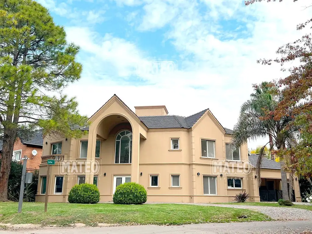 PLANTA ALTA: Destacada escalera de madera maciza conduce a la planta alta. Estar con amplios ventanales y hermosas vistas a arboleda. Dormitorio principal en suite con balcón, amplio vestidor, hidromasajes doble, box de ducha. Tres amplios dormitorios con placar. Segundo baño compartimentado con doble bacha, hidromasajes y box de ducha. Calefacción por radiadores.