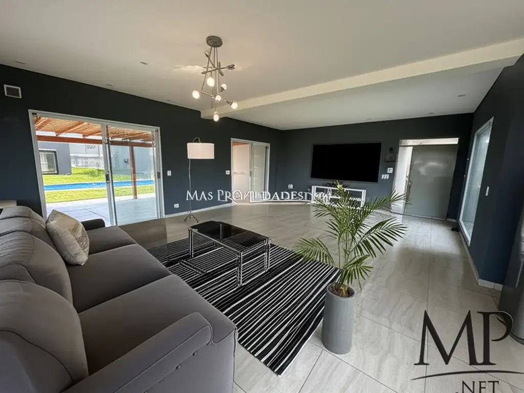El exterior de la propiedad es igual de atractivo, con una parrilla perfecta para disfrutar de asados al aire libre y una piscina que invita a relajarse en los días soleados. Sumado a esto, el barrio cuenta con canchas de tenis y áreas recreativas, ideales para el esparcimiento familiar. La orientación sur de la casa asegura una excelente iluminación natural y un ambiente fresco durante todo el año, convirtiéndola en una opción perfecta para quienes buscan calidad de vida en un entorno residencial exclusivo.