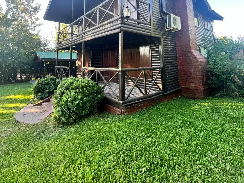 La cabaña está totalmente desarrollada en madera. Galería techada. Pileta plástica con bomba y filtro, y solárium. Quincho rústico con techo de paja, solárium, mesada con grifería y parrilla. Pérgola de madera con techo de chapa, luz y toma corriente, para guarda de 2 vehículos. Adherido a la cochera, un cuarto de herramientas.