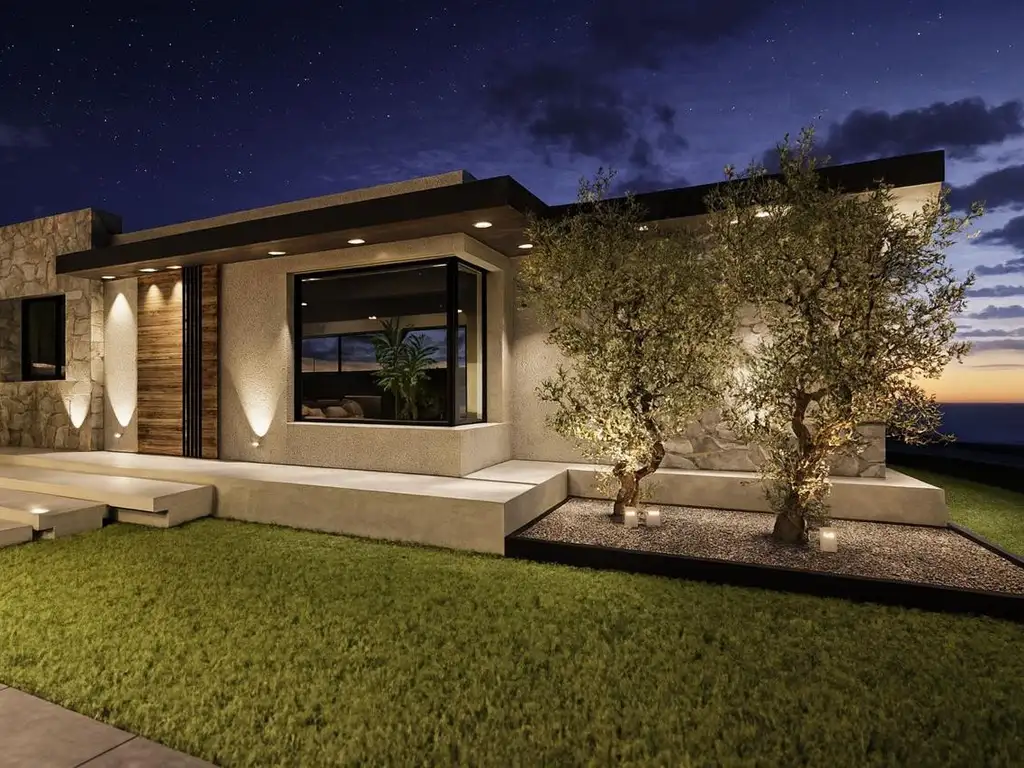 Vivienda unifamiliar desarrollada en planta baja con tipologia en “L”, cuenta con estar comedor cocina integrado, con orientacion hacia es este - oeste y ventanas hacia el norte, aprovechando el mejor asoleamiento e iluminación natural. Cuenta con lavanderia hacia el sur y cochera pasante con acceso independiente. Tiene un toilette, dos dormitorios con baño zonificado compartido. Un dormitorio principal con vestidor y baño en suite, con salida independiente al jardín.