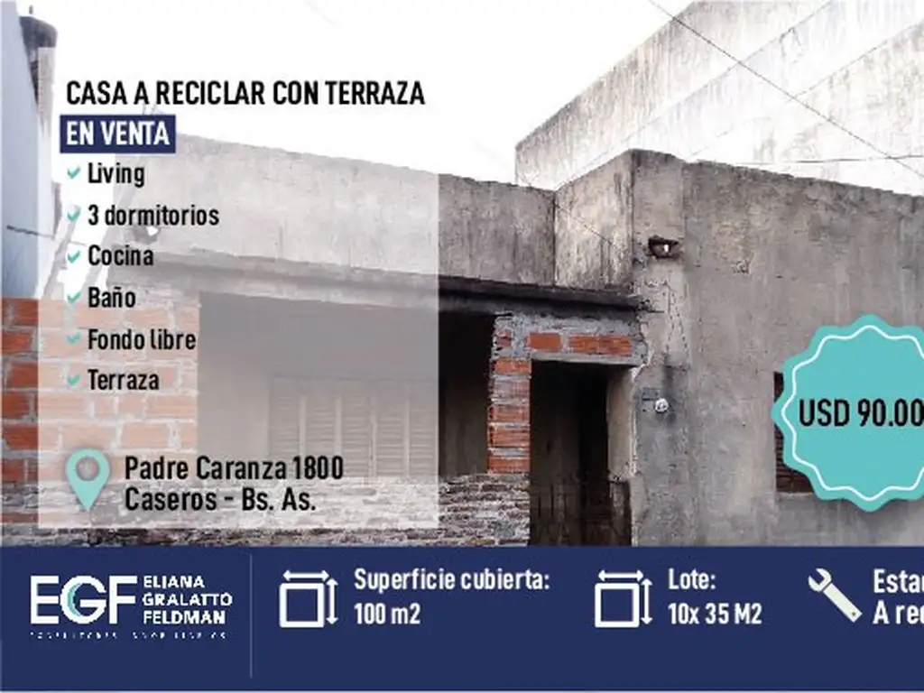 Venta casa a reciclar living 3 dormitorio cocina baño fondo libre terraza lote 10x 35