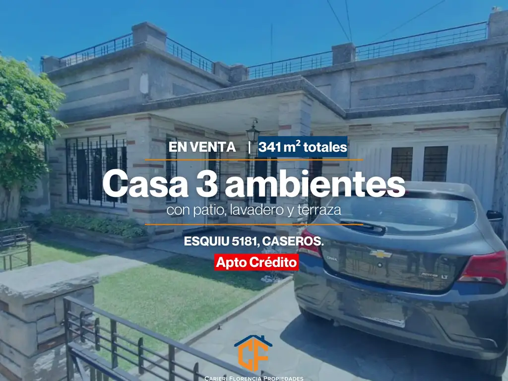 VENTA CASA 3 AMBIENTES CON PATIO, LAVADERO, GARAGE Y PARRILLA, APTO CRÉDITO EN CASEROS
