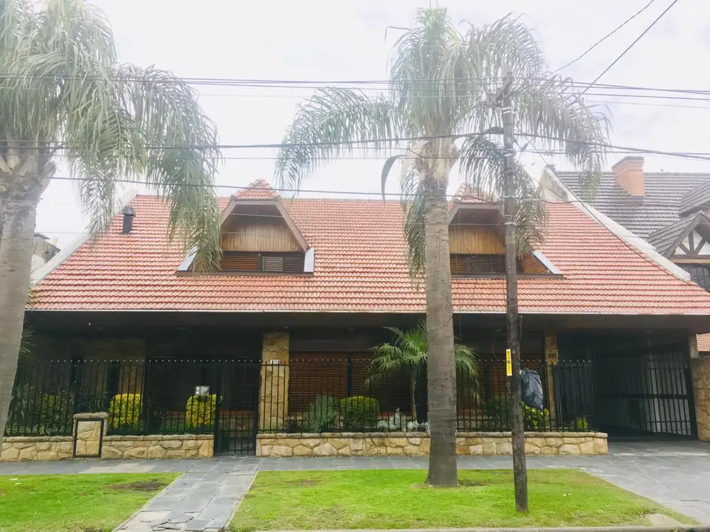 se encuentra un amplio living, cocina comedor, toilette, escritorio, parque con quincho y cochera pasante cubierta con capacidad para dos vehículos. Cuenta también con un departamento de dos ambientes. En planta alta dispone de tres habitaciones, principal en suite, y un baño completo.