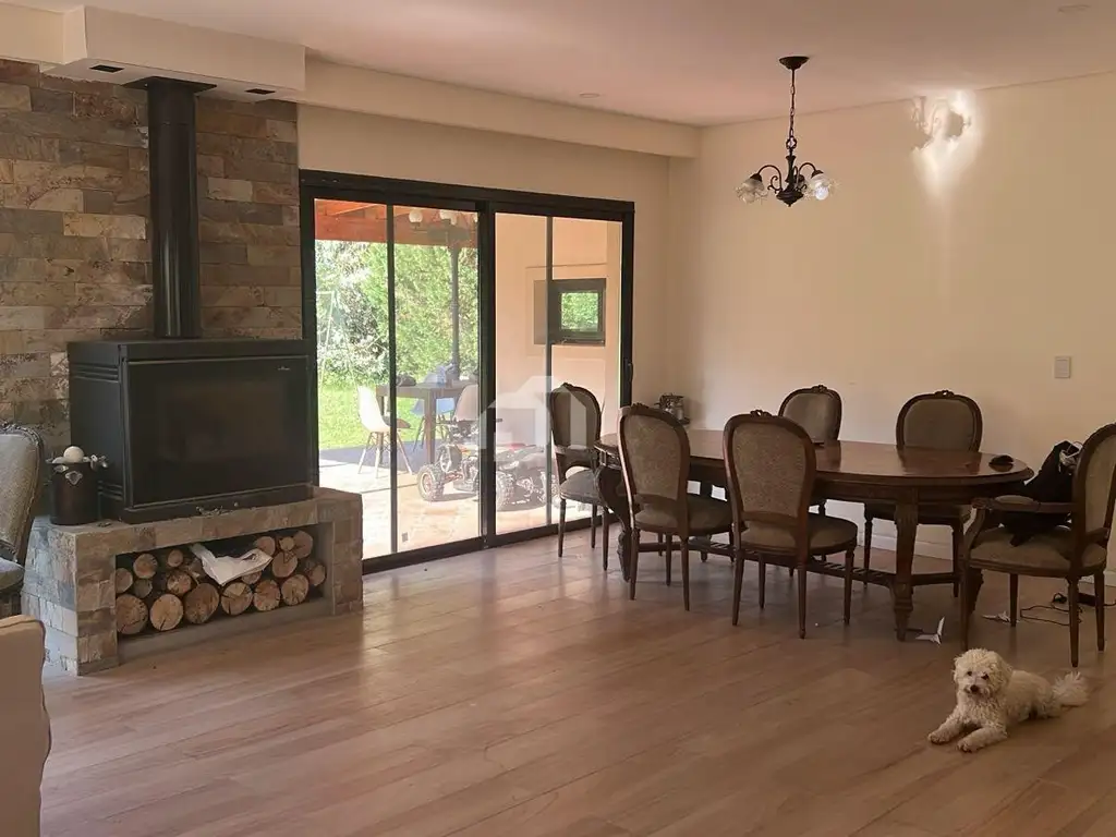 Al ingresar, un patio de recepción conduce hacia un amplio living comedor con hogar a leña Tromen, que otorga calidez y carácter a los ambientes. Un gran patio interno con fuente decorativa aporta luminosidad y una atmósfera única al corazón de la vivienda.