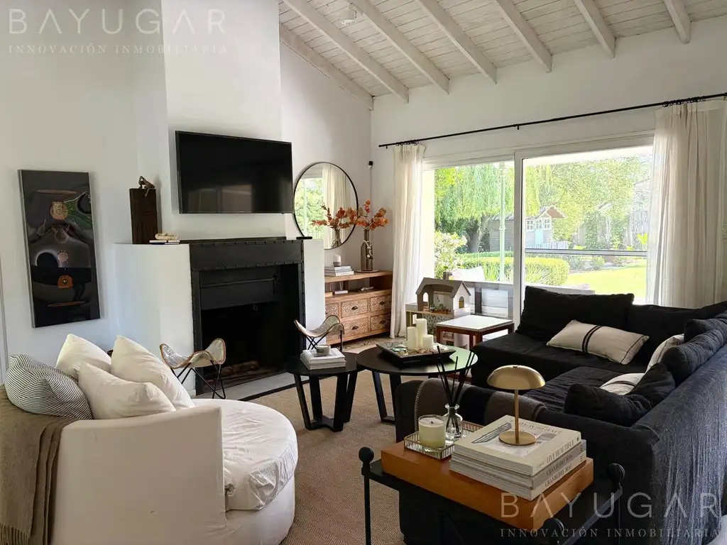 La zona social se compone de un living con chimenea y un comedor formal, ambos con salida y vistas al jardín interno, lo que aporta luminosidad y una conexión permanente con el exterior.