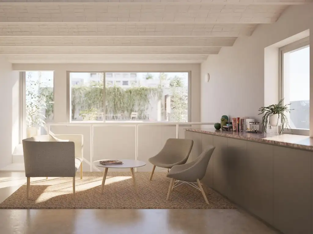 Se desarrolla en 2 niveles, la planta baja compuesta por ingreso en doble altura, un baño y 3 dormitorios, todos con placard, el principal con vestidor y baño en suite. Todos los dormitorios ventilan a un patio con orientación Norte, lo que asegura abundante iluminación natural en todos los ambientes. También encontramos en planta baja un sector de servicio para lavarropas.