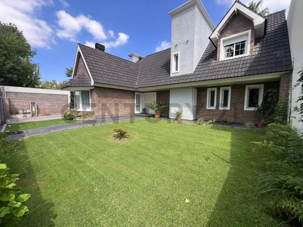 Dos Plantas, PB, amplia cocina comedor con isla, living comedor con chimenea, con grndes ventanales con vista a la galería, jardín y piscina, toilette, habitación en suite con vestidor.