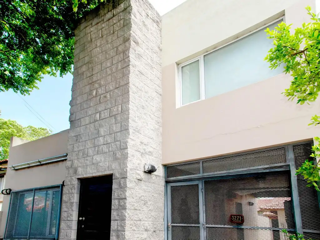 La vivienda que se encuentra al frente, se trata de una construcción moderna (2007) la cual cuenta con dos plantas. En planta baja living-comedor, baño, cocina y lavadero; en planta alta